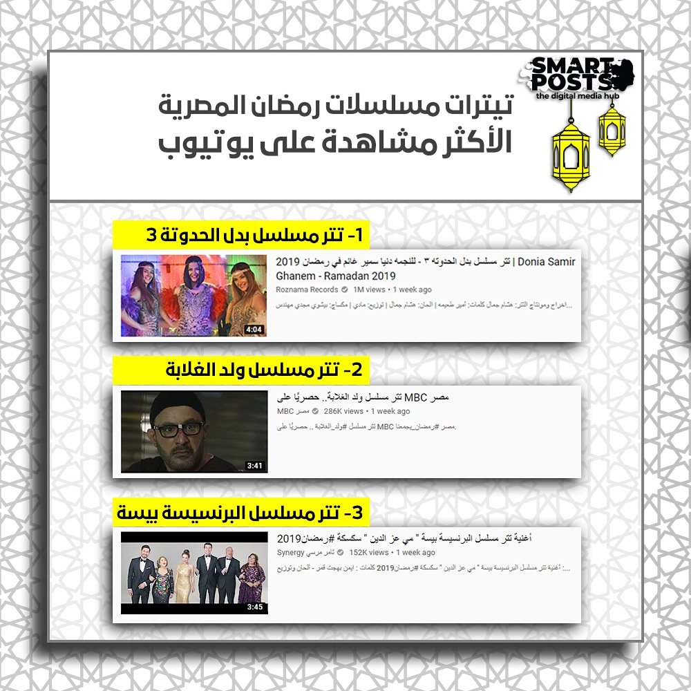Smart Posts On Twitter تترات مسلسلات رمضان المصرية الأكثر مشاهدة على يوتيوب تتر مسلسل بدل الحدوتة 3 غناء دنيا سمير غانم حصدت على 1 مليون مشاهدة تتر مسلسل ولاد غلابة غناء بهاء سلطان حصدت على 286 ألف مشاهدة