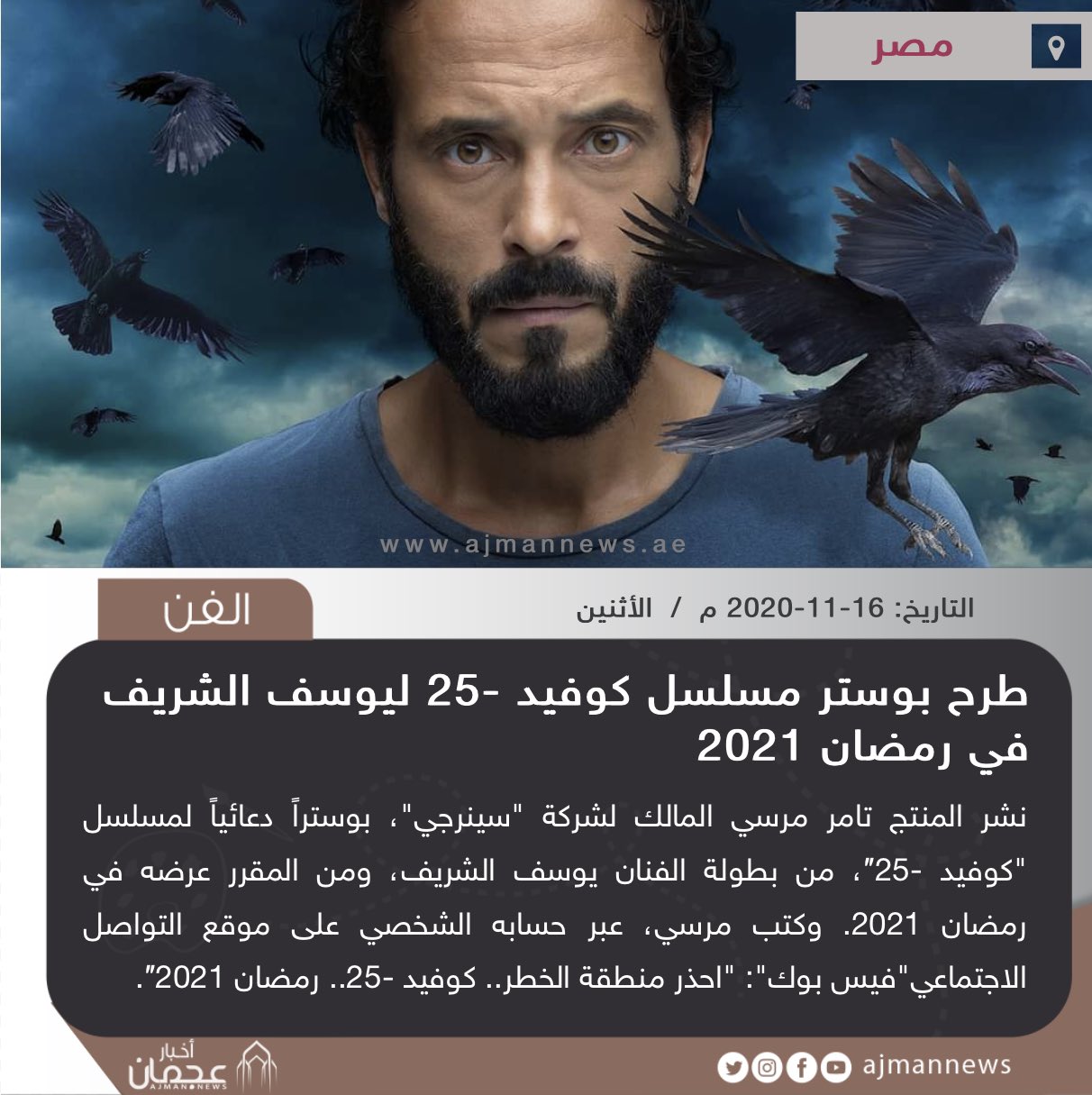 أخبار عجمان طرح بوستر مسلسل كوفيد 25 ليوسف الشريف في رمضان 2021 أخبار الفن الفن أخبار السينما سينما مصر